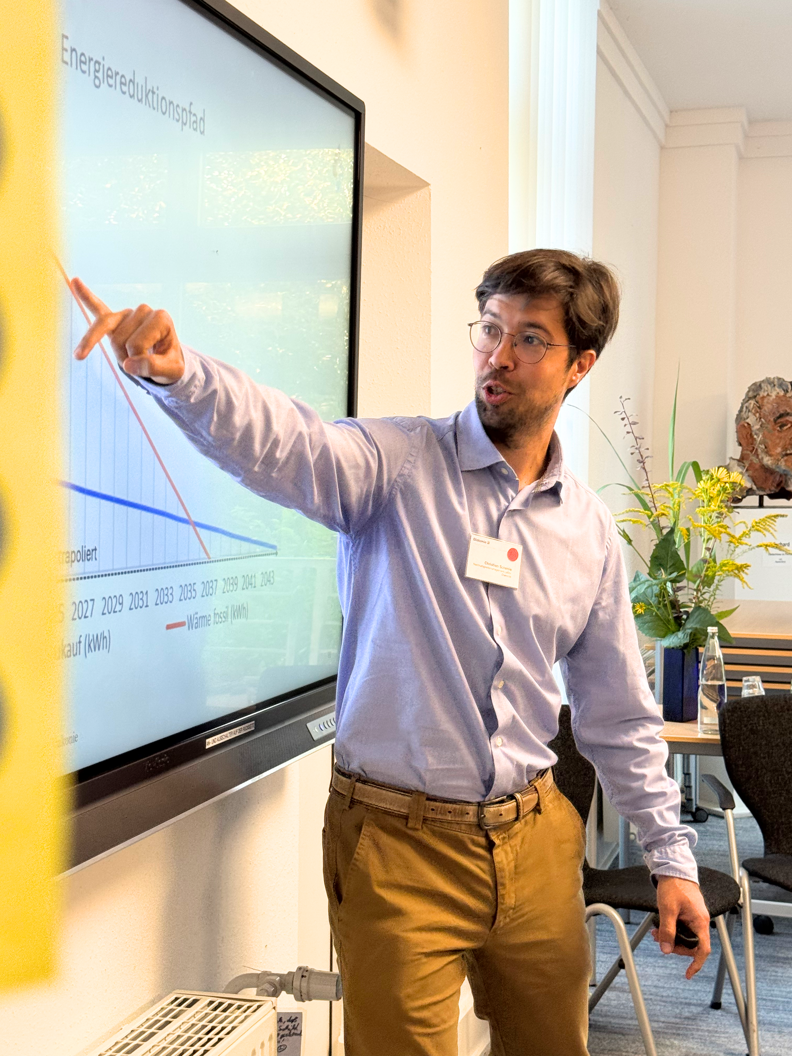 Den inhaltlichen Auftakt gestaltete Thomas Voß, ehemaliger kaufmännischer Direktor der LWL-Kliniken Münster und Lengerich, mit einer Keynote. Er zeigte auf, wie sich ökologisches Engagement und wirtschaftliches Denken verbinden lassen, und ermutigte dazu, Nachhaltigkeit als strategische Chance zu begreifen. Nachhaltigkeitsmanager Christian Schehle stellte ein Best-Practice-Beispiel aus der Lafim-Diakonie vor, die 2023 mit dem Deutschen Nachhaltigkeitspreis ausgezeichnet wurde. Schehle berichtete aus einem Betrieb, der Nachhaltigkeit konsequent als Strategie lebt. Im Anschluss teilten Teilnehmende und Referierende in einer lebedingen Fishbowl-Diskussion ihre Perspektiven zu aktuellen Herausforderungen. Am Nachmittag wurden die Themen in Workshops vertieft: Von „Küche kann Klima“ über Immobilienmanagement, CO₂-Reduktion, Nachhaltigkeitskommunikation bis hin zu Change Management und Beteiligungsstrategien. So konnte sowohl in die Tiefe als auch praxisorientiert diskutieren werden.
